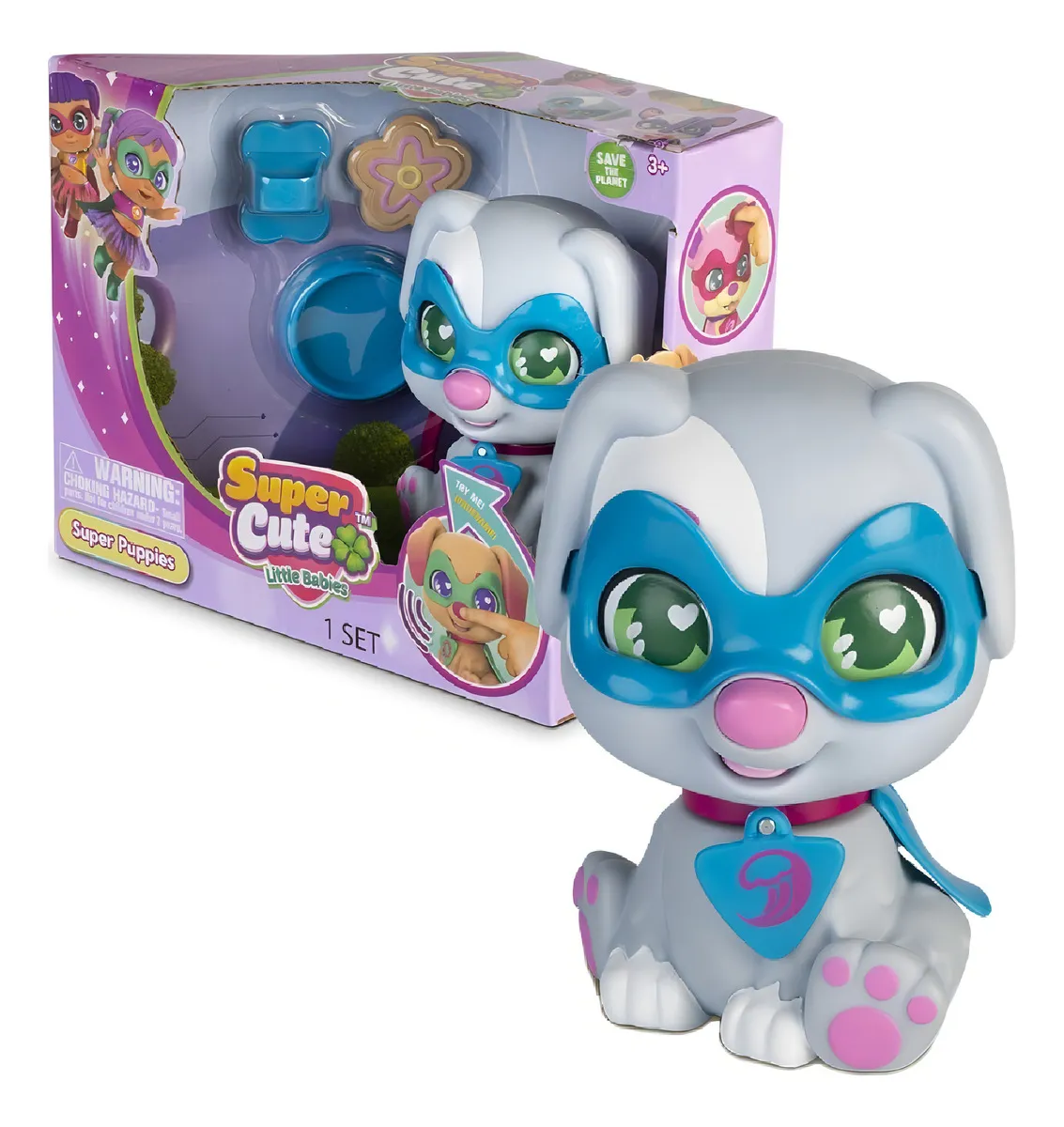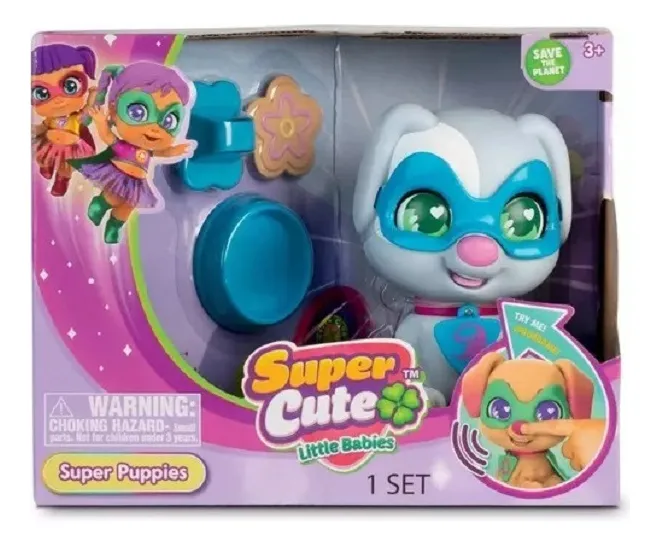¡Llamando a todos los héroes del patio de juegos! Conoce a los Super Puppies, los perritos más adorables con poderes de ternura infinita. Este set incluye una mascota interactiva que emite sonidos al presionar su pecho. ¡Pruébala y escucha cómo cobra vida!
