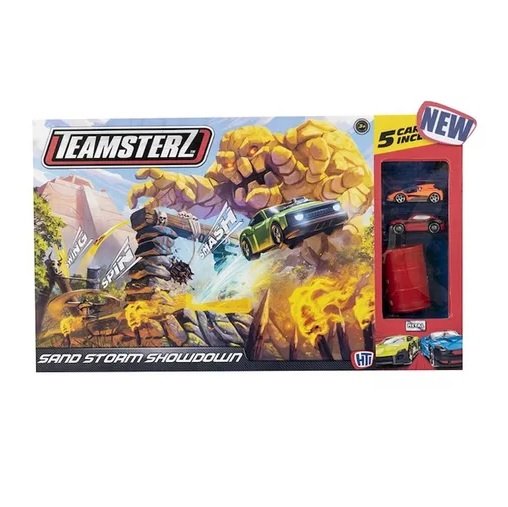 Set Teamsterz Sand Storm Showdown, una pista de acción que te lleva directamente a una tormenta de arena en terrenos extremos. Ideal para los amantes de las aventuras off-road y los desafíos más salvajes que la naturaleza puede ofrecer.